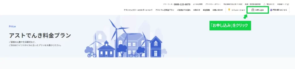アストでんきへの電気の切り替え申し込みは今のところ「WEBのみ」になっています。