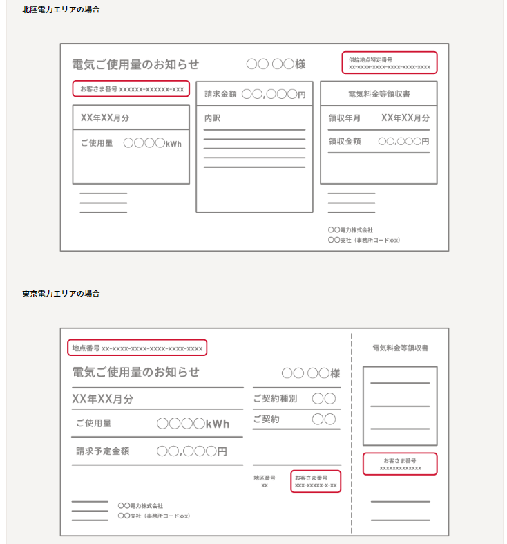 検針票またはご契約中の電力会社のアカウントページから供給地点特定番号とお客さま番号情報を確認する