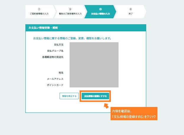 お支払い情報の入力確認後「支払情報の登録をすすむ」をクリック